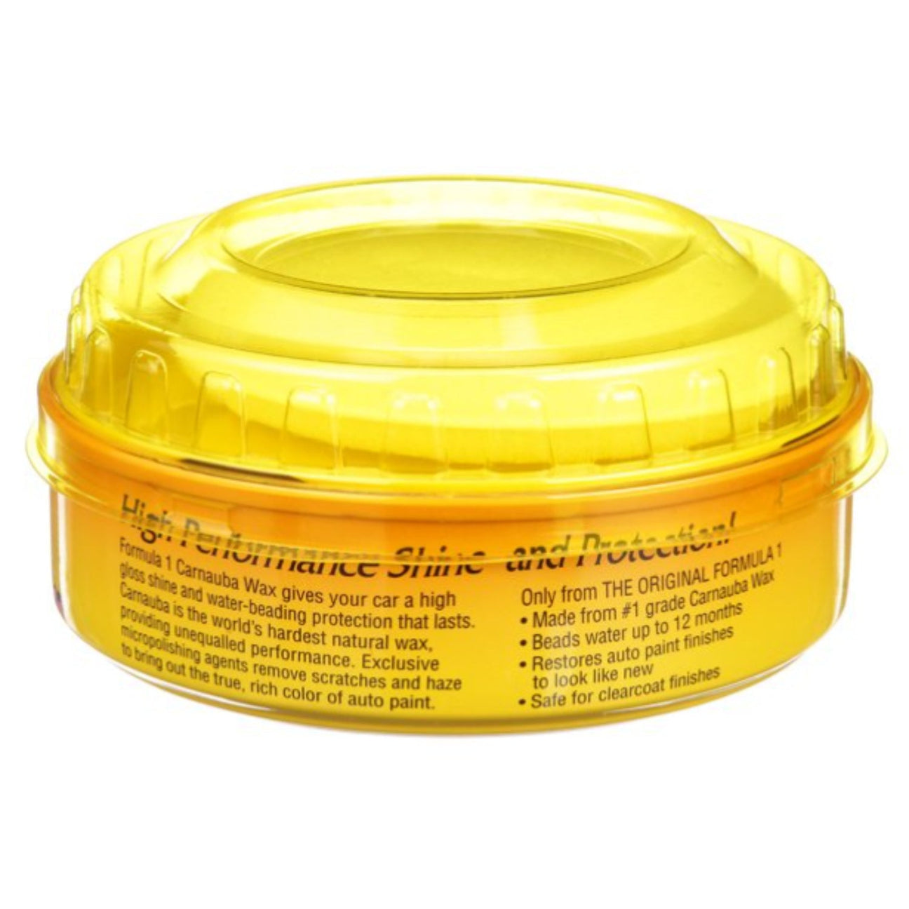 Karnauba vosak vrhunskog kvaliteta: dobijen iz listova karnauba palme, ovaj vosak je najtvrđi prirodni vosak poznat čoveku. Formula 1 koristi samo najviši stepen Karnaube u svom najčistijem obliku. Specijalno formulisano da se lako nanosi i briše Zaštita od vodenih perlica koja traje do 12 meseci.