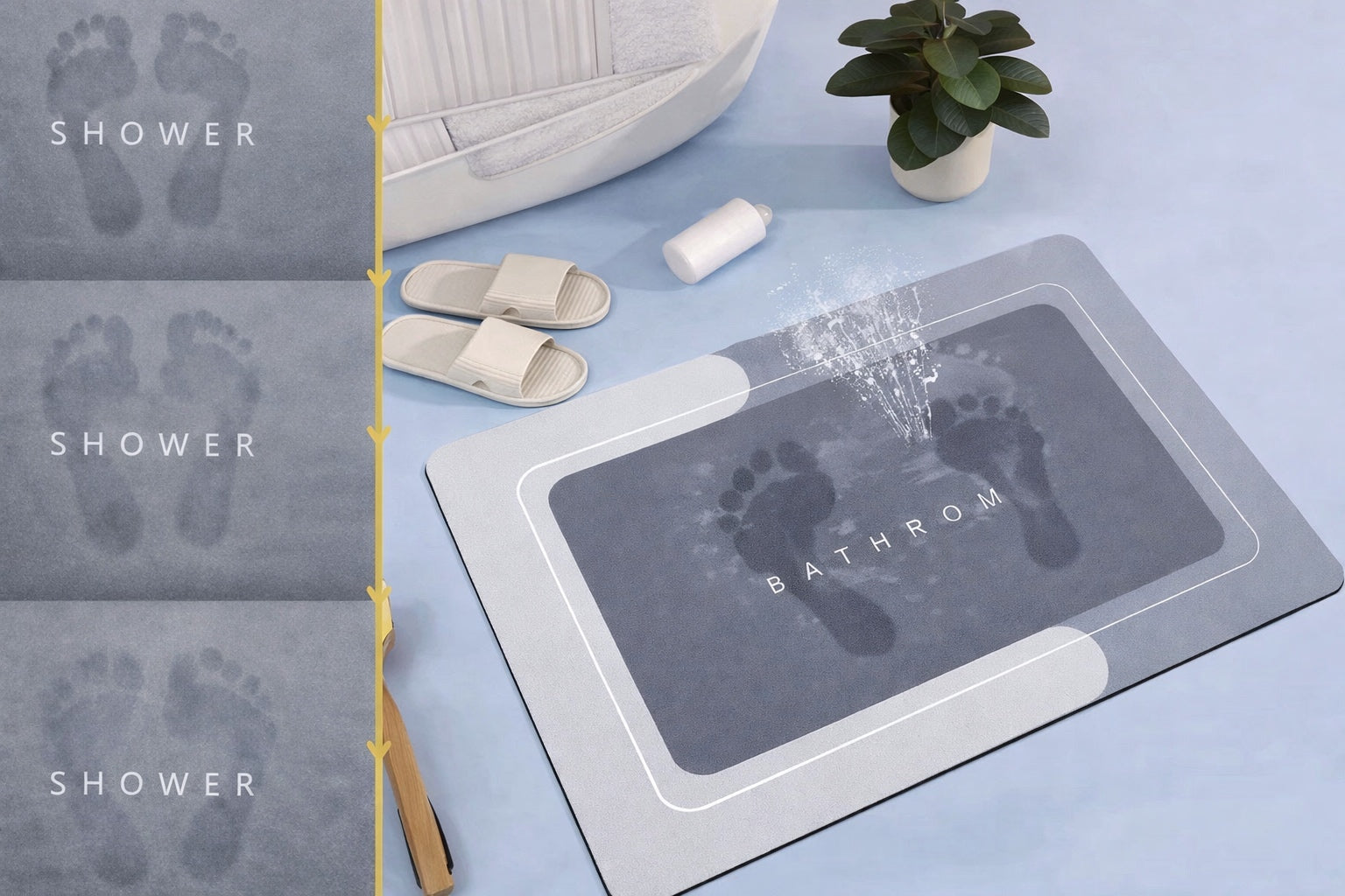 Zato je tu super upijajuća kupatilska prostirka koja rešava ovaj problem za nekoliko sekundi.